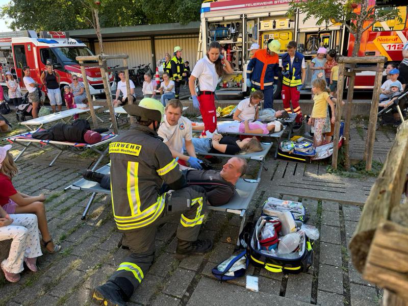 Die zweite Festwoche begann am Samstagnachmittag mit der traditionellen Großübung, die diesmal von der Feuerwehr Steppach organisiert wurde. Angenommen wurde ein Chlorgasaustritt im Hallenbad Steppach. Eine Herausforderung, die die Einsatzkräfte souverän meisterten. Für die zahlreichen Zuschauer bot sich ein spannender Einblick in das Können und die Schlagkraft unserer Feuerwehren.