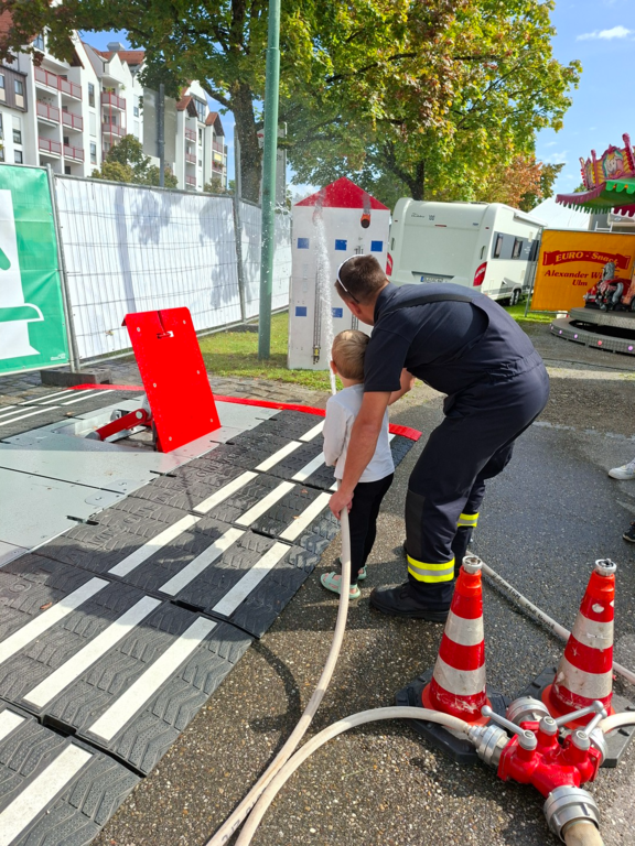 Den Sonntag krönte eine eindrucksvolle Fahrzeugschau, bei der nicht nur die Neusäßer Feuerwehren ihre Fahrzeuge präsentierten, sondern auch das THW, die Polizei, das Rote Kreuz und viele weitere Organisationen.